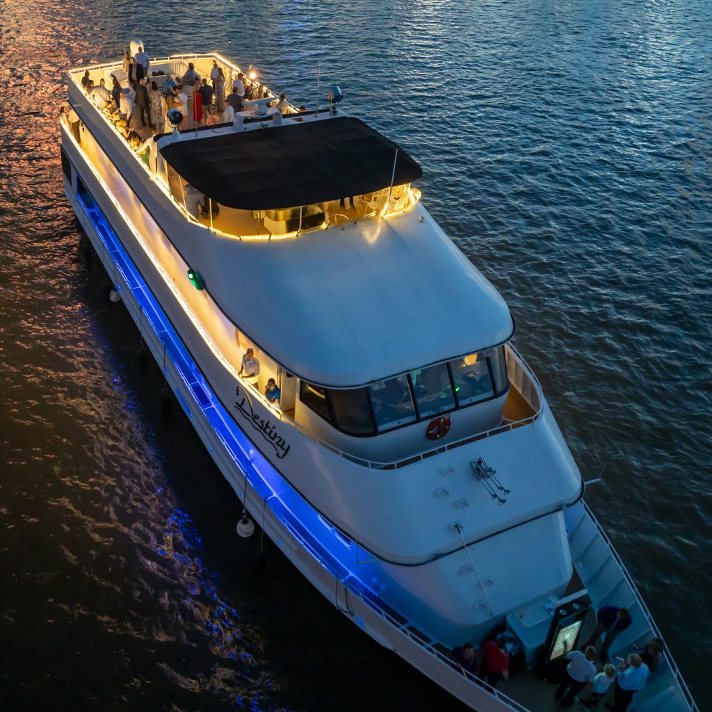 The DESTINY is in good condition. The yacht offers a sleek style and wonderful viewing for passengers.