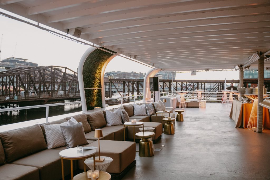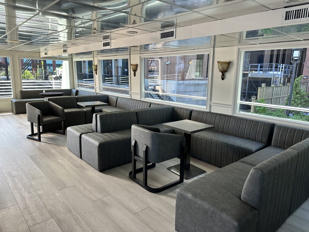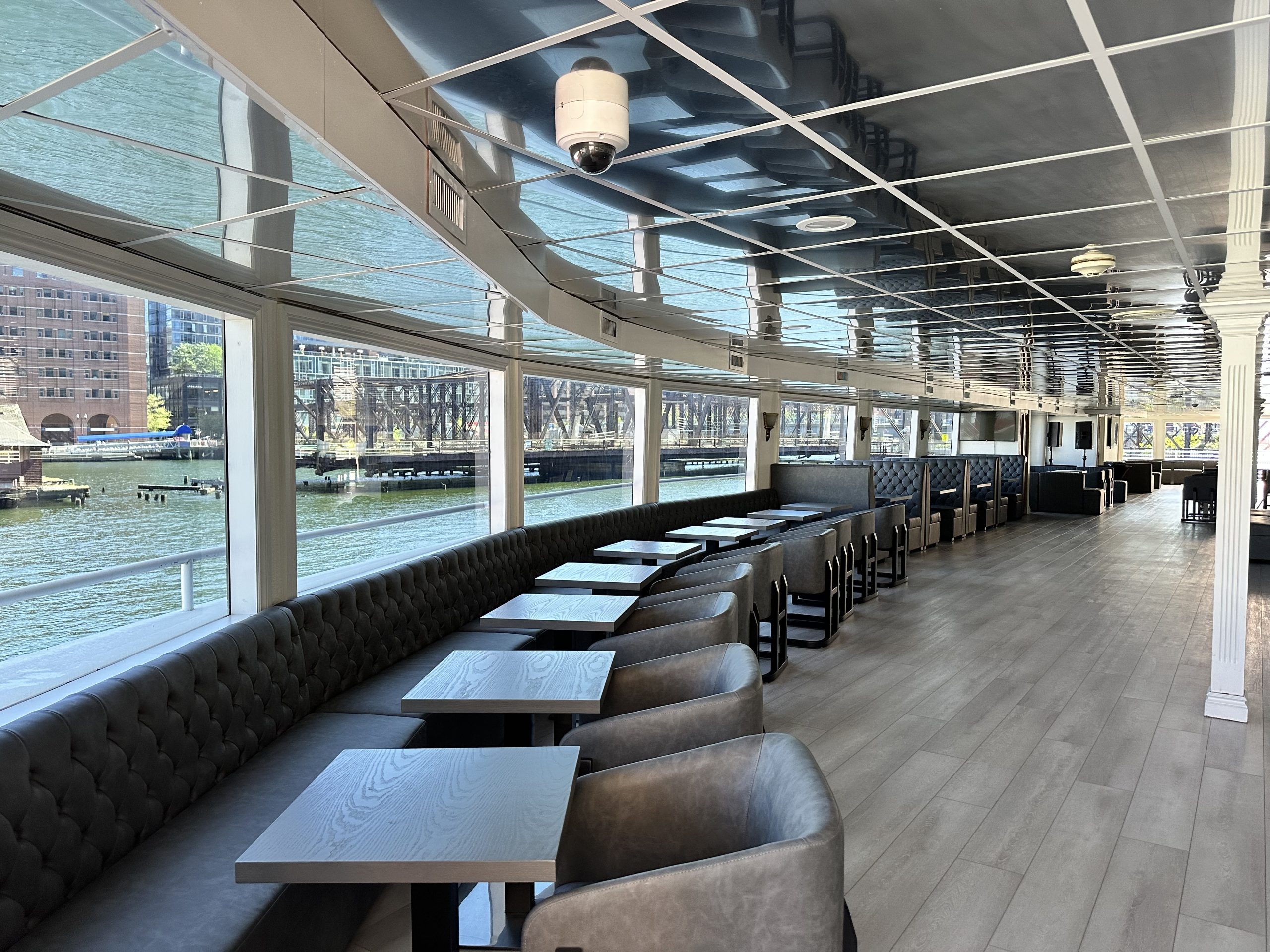 - Custom banquette seating along port, starboard and centerline (seating for 150)