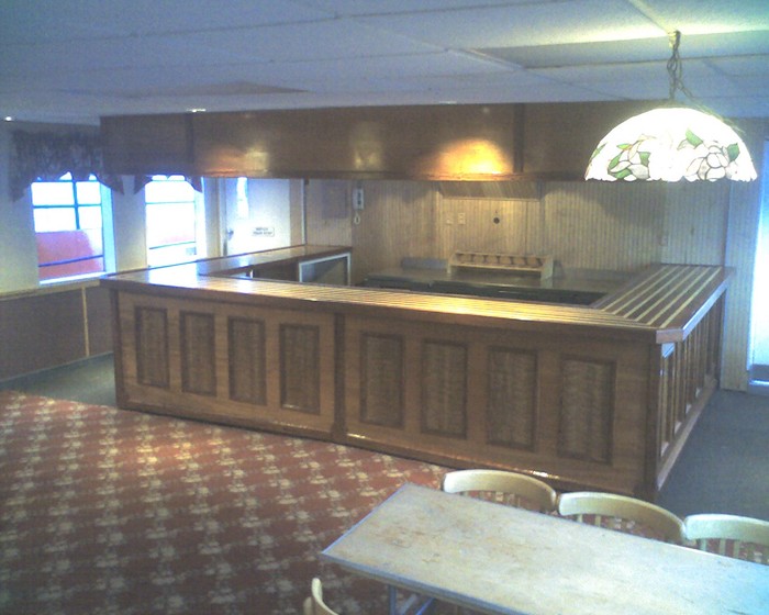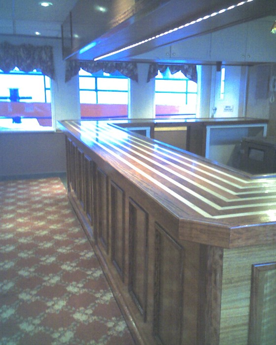 - Custom built mahogany and cherry bar with a mahogany and maple top